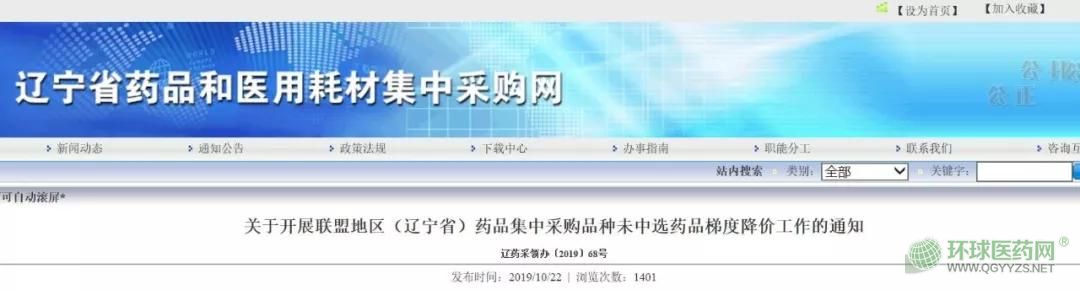 10月22日,遼寧省藥品和醫(yī)用耗材集中采購網(wǎng)發(fā)布《關(guān)于開展聯(lián)盟地區(qū)(遼寧?。┧幤芳胁少徠贩N未中選藥品梯度降價(jià)工作的通知》(簡稱《通知》),要求按照國家政策相關(guān)規(guī)定,就聯(lián)盟地區(qū)(遼寧省)藥品集中采購品種未中選藥品展開梯度降價(jià)工作。